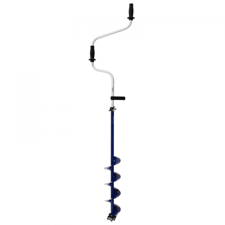 Ледобур рыболовный складной шнековый с правым вращением предназначен для бурения отверстий во льду при ловле рыбы. Верхняя рукоятка ледобура смещена относительно оси ледобура на 130 мм, а нижняя на 150 мм. Такое расположение рукояток позволяет вращать ледобур одновременно двумя руками, тем самым, увеличивая скорость бурения лунок во льду.