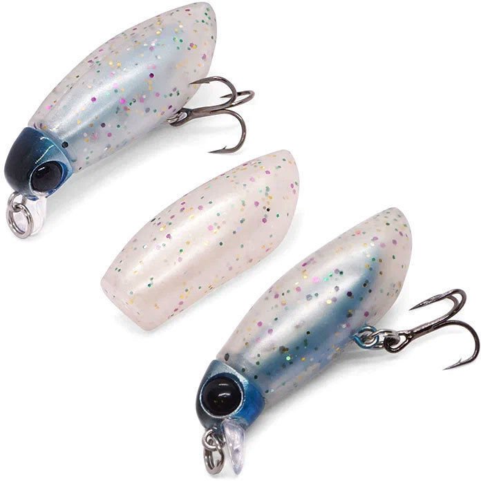 Внешность MuteBall напоминает кальмара или личинку какого-то насекомого, хотя в воблере можно легко разглядеть и имитацию обычного малька. Ассоциаций при виде него возникает много, что позволит подобрать ключик к любой рыбе, потому что похожих на форму MuteBall организмов в воде довольно много, и рыба наверняка знакома с похожей добычей практически в каждом водоеме.