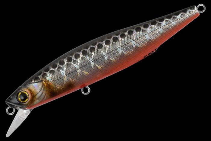 Особенности дизайна: DOMINANT 90SP имеет классическую для воблеров-минноу узкую и вытянутую форму тела. Верхняя часть боковой поверхности воблера выполнена в виде ромбовидных насечек, нижняя - в виде косых насечек, создающих эффект рыбьей чешуи. Головная часть воблера имитирует жаберные крышки рыбки. Вклеенные 3D-глаза завершают реалистичный дизайн приманки.