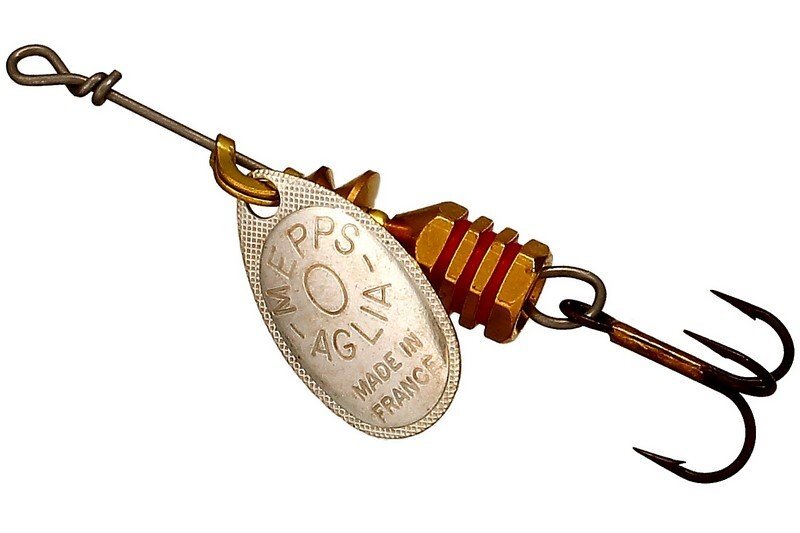 MEPPS AGLIA TW отличаются от базовой модели двухцветной рефлекторной окраской лепестка и возможностью быстрой замены тройника. Грузик сердечника у AGLIA TW имеет внутреннюю резьбу с очень крупным шагом. Проволочная ось завершается колечком для крючка, сопряженным с пружинной шпилькой. Находясь в теле груза, пружинная шпилька упирается в уступ крупной резьбы. В данном случае шестигранный грузик служит винтовым замочком. Освобождение шпильки осуществляется простым свинчиванием груза, а возвратная фиксация — вдавливанием шпильки в его тело. Это простой, но очень надежный узел крепления (не разрушается даже при значительных нагрузках). AGLIA TW — настоящий клад для любителей экспериментов на водоемах. Рыболов получает возможность быстро укомплектовать вращалку пластиковой рыбкой, виброхвостом, твистером или просто тройником с мухой подходящего цвета. Кроме того, это идеальный вариант для создания всевозможных тандемов из вращающихся блесен или для замены тройника на одинарный крючок с защитной петелькой при ловле на закоряженных участках водоемов. Цвета лепестков: серебряный, золотой и медный.